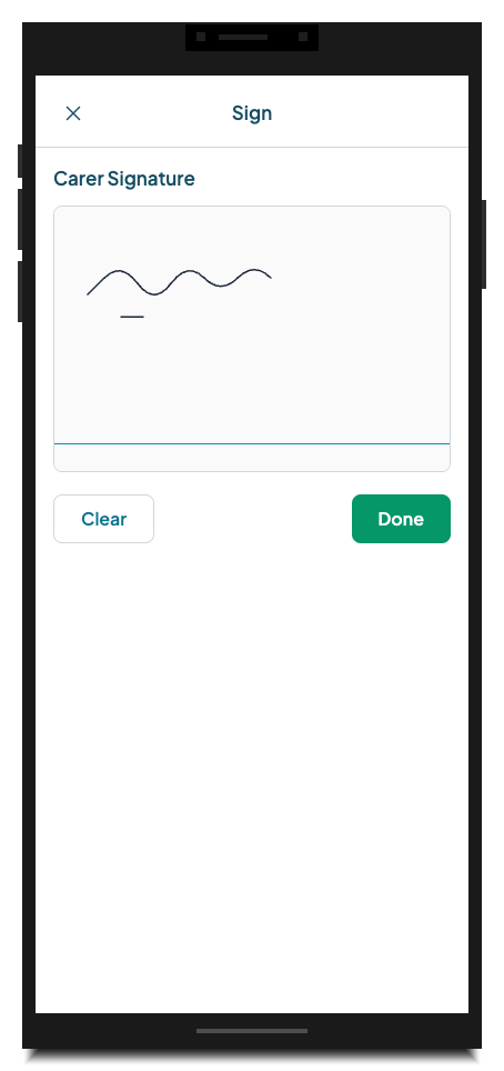 Signature fields are for people who are present. The capture happens on the device being used to fill in the form. If a coordinator needs a carer to sign after the fact, they can open the record on the carer's device and capture the signature there. Signatures sent by email or typed name are not supported — the field specifically captures a drawn stroke.