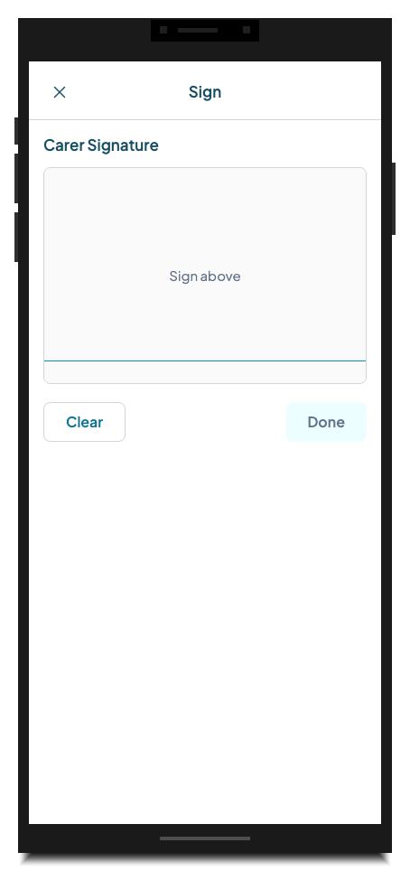 Signature fields are for people who are present. The capture happens on the device being used to fill in the form. If a coordinator needs a carer to sign after the fact, they can open the record on the carer's device and capture the signature there. Signatures sent by email or typed name are not supported — the field specifically captures a drawn stroke.